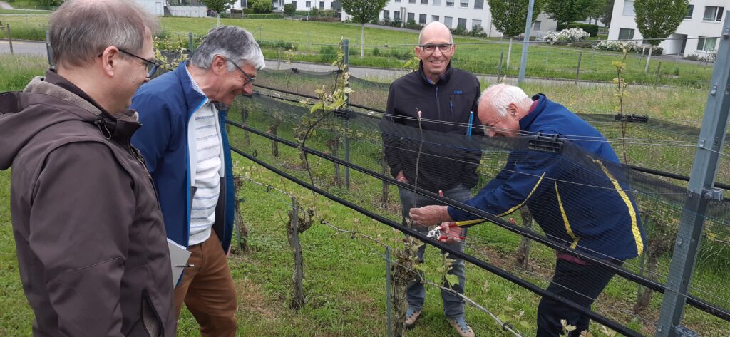 Ende 2023 erfuhren Beat und Othmar, dass Frau Zimmer die Bewirtschaftung der Rebfläche nicht mehr weiterführen wollte. Schnell war klar, dass es schade wäre diesen Rebberg «verschwinden» zu lassen. Es war aber auch klar, dass die Arbeitslast auf weitere Schultern verteilt werden sollte. So konnten Bruno und Olaf für die Mitarbeit gewonnen werden.